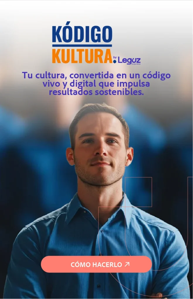KÓDIGO KULTURA es el producto insignia de la División de Cultura Organizacional de LEGUZ, creado para transformar la cultura en un código vivo y digital que impulsa resultados sostenibles.